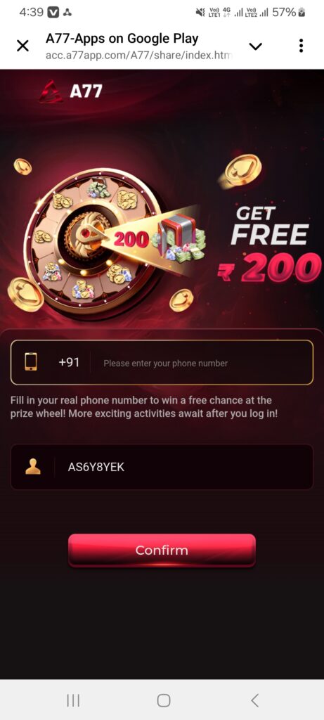 A77 Game New Yono Type App {Spin Bonus ₹200}Cash out – ₹110