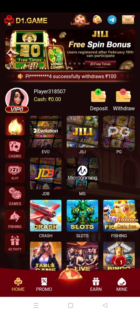 Doston aapko is application me minimum diposit Rs100 rupay se kar sakte hain.aapko first time diposit karne par aapko bahut sare free bonus diye jayenge.aapko is app me minimum withdrawal Rs100 rupay se adhik ka bank account me withdrawal kar sakte hain.