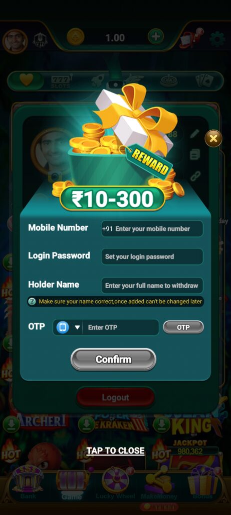 Doston Aap sab ko is app me Singup bonus ₹10-300 rupay ka Welcome bonus prapt honge. Yah app yono company ke madhyam se lunch Kiya gaya hain. Is app me aap sabhi ko darne ki jarurat nahi hain. Kyon ki yah app bahut majedar hain.