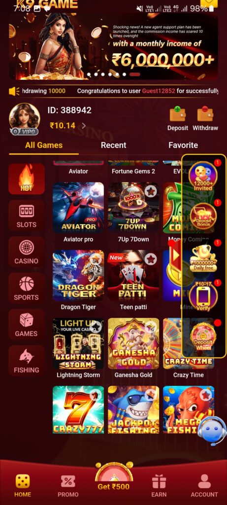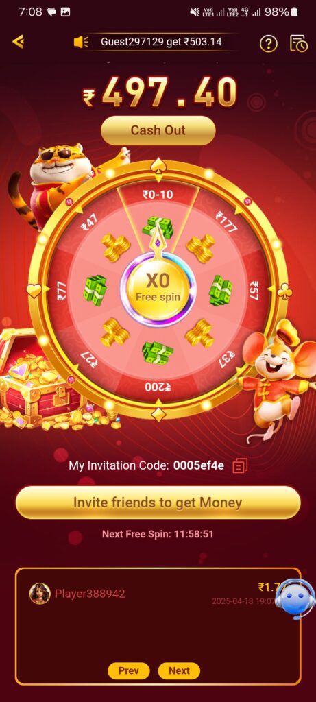Aapko is app me ₹500 rupay ka free spin karke bonus prapt kar sakte hain. Aur is application me first time deposit karne par 37% ka free bonus diye jaenge. Aapko is app me bahut sare free bonus diye jaenge. Aapko is application se darne ki jarurat nahi hain.