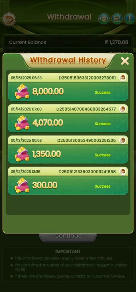 Friends aapko is app me minimum withdrawal ₹100 rupay se adhik kar sakte hain. Aap apne mobile phone se ghar baithe hua. Aapko is app me withdrawal ka kisi type ki paresani nahi ho sakta hain. Aapko is app me ₹100 – unlimited withdrawal kar sakte hain.