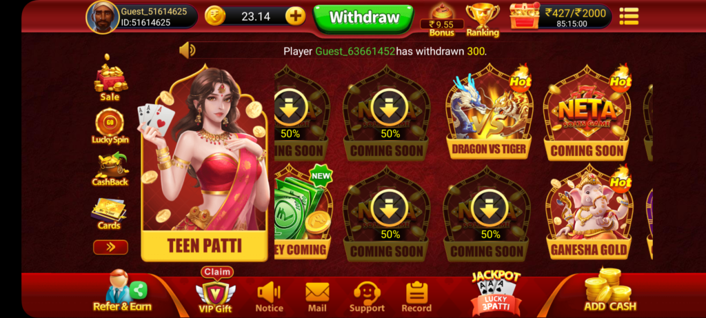 Doston aapko is application me aapko bahut achchhe achchhe game play karne ke liye aapko milega. Aap koyi ek game play karke daily ka ₹3000+ ka earnings kar sakte hain. Aap apne mobile phone se game play karke. Aapko is application me winning ka bahut adhik chans rahta hain.